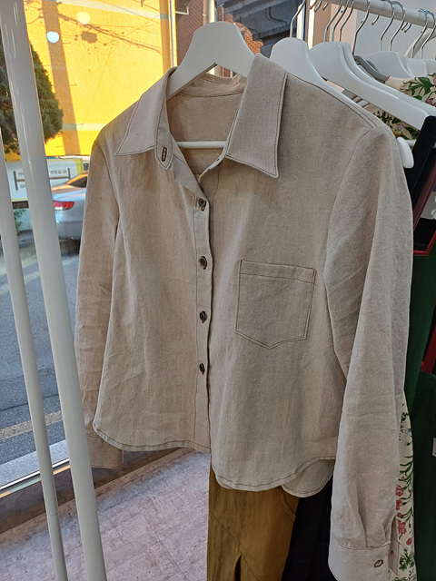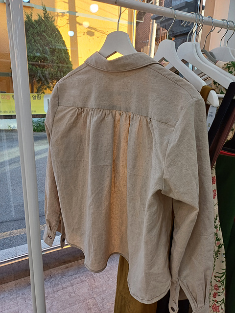 빈티지한 셔츠입니다. 오트밀린넨 *갈색실* 그레이단추로 멋을 낸 나만의 셔츠.